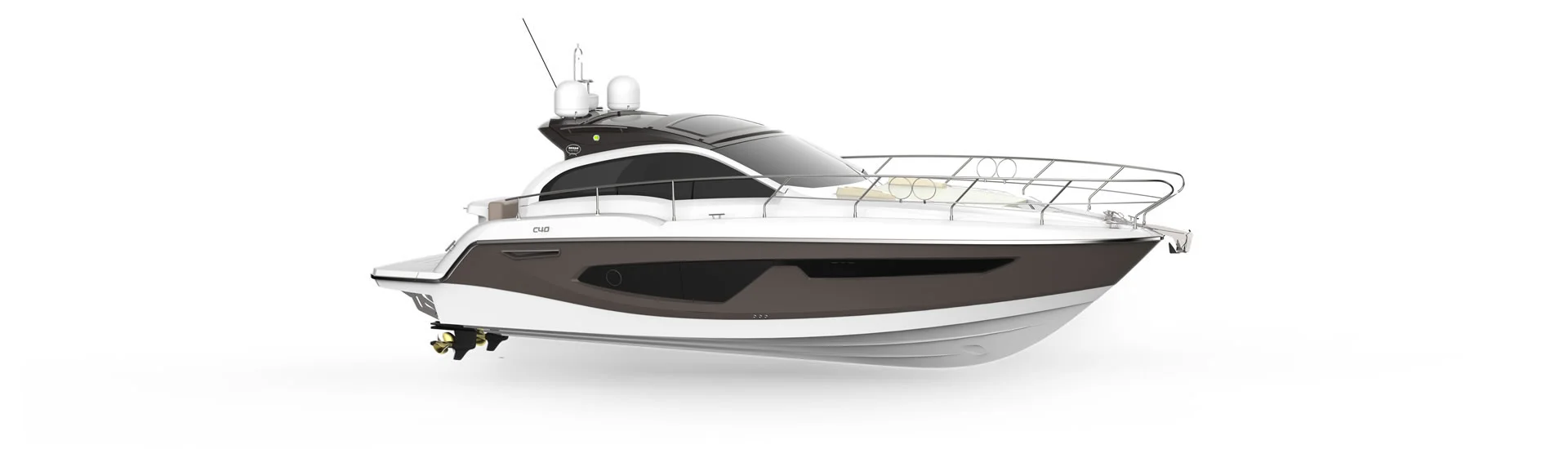 Com estilo esportivo e elegante, é uma embarcação completa que mescla otimização de espaços e navegação estável. Na versão construída no Brasil, seu moderno sistema de hardtop foi ampliado, ganhando mais altura e aberturas em vidro e sua popa foi aperfeiçoada para receber espaço gourmet e plataforma submergível.